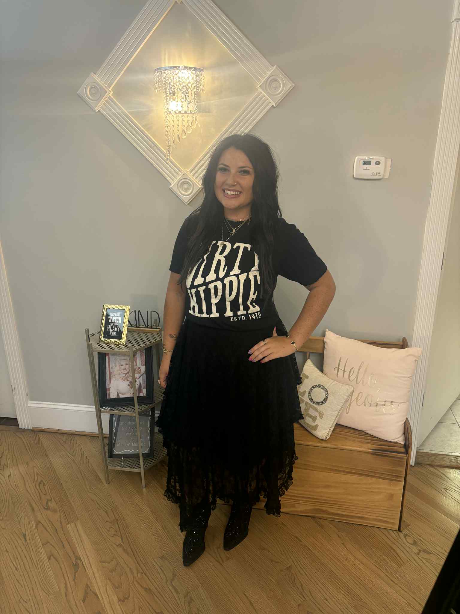 Embrace your free spirit with the Black Dirty Hippie Graphic T-shirt. This playful tee combines bold attitude with casual comfort, making it perfect for those who love to stand out and keep things fun. Whether you're hitting a festival or just chilling with friends, this shirt adds a cheeky twist to your everyday style.