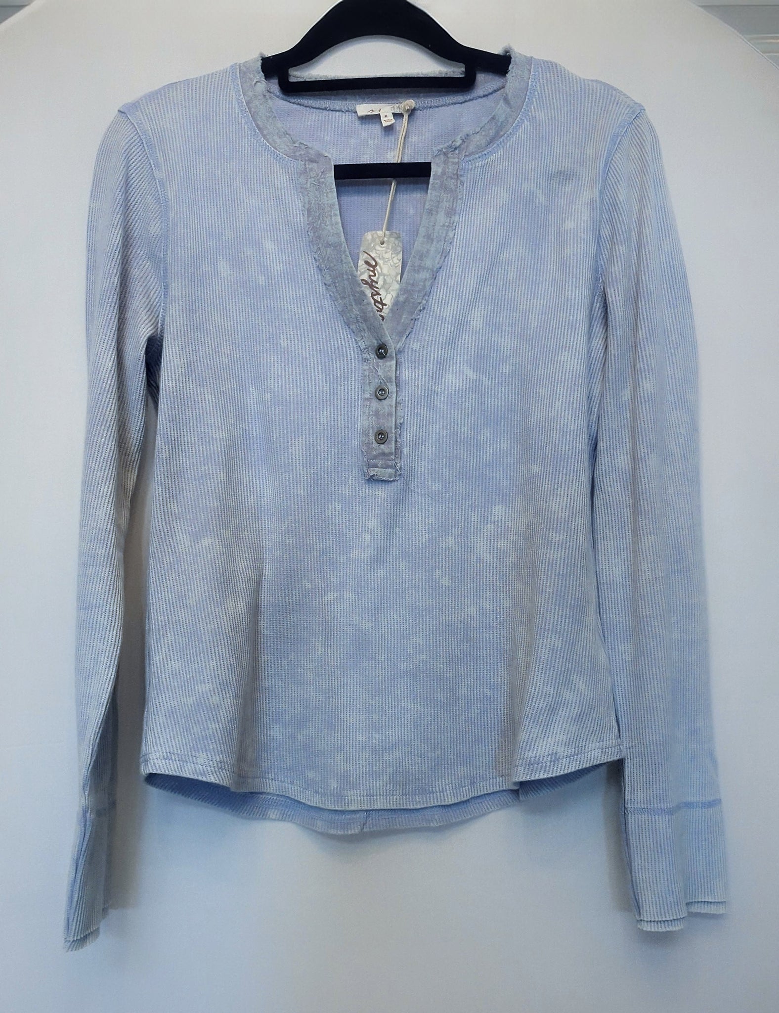 Buttons meet neckline in this laid-back long-sleeve essential. The V-neck sits just right, while the hi-lo hem keeps things interesting—dip lower in front, rise higher in back. Washed thermal fabric feels broken-in from day one, ready for layering or flying solo.